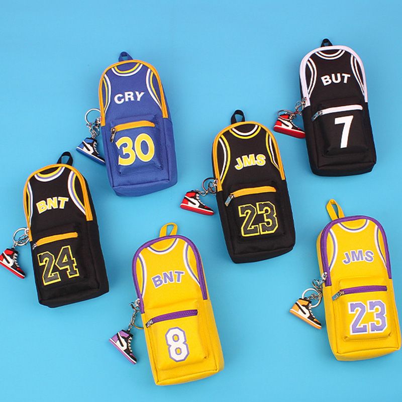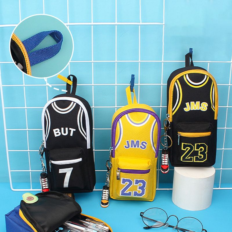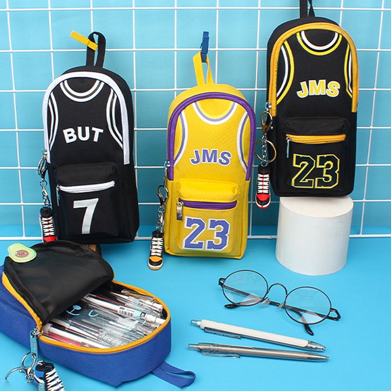 Fashionable Large Capacity Canvas Double Layer Basketball Pencil Case Birthday Gift Students Stationery Bag Student Essential