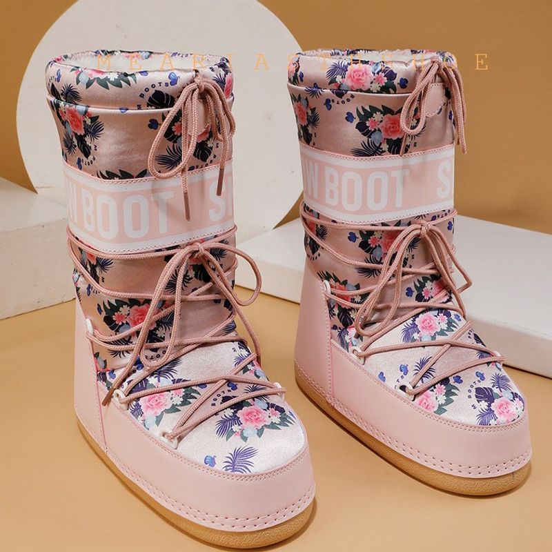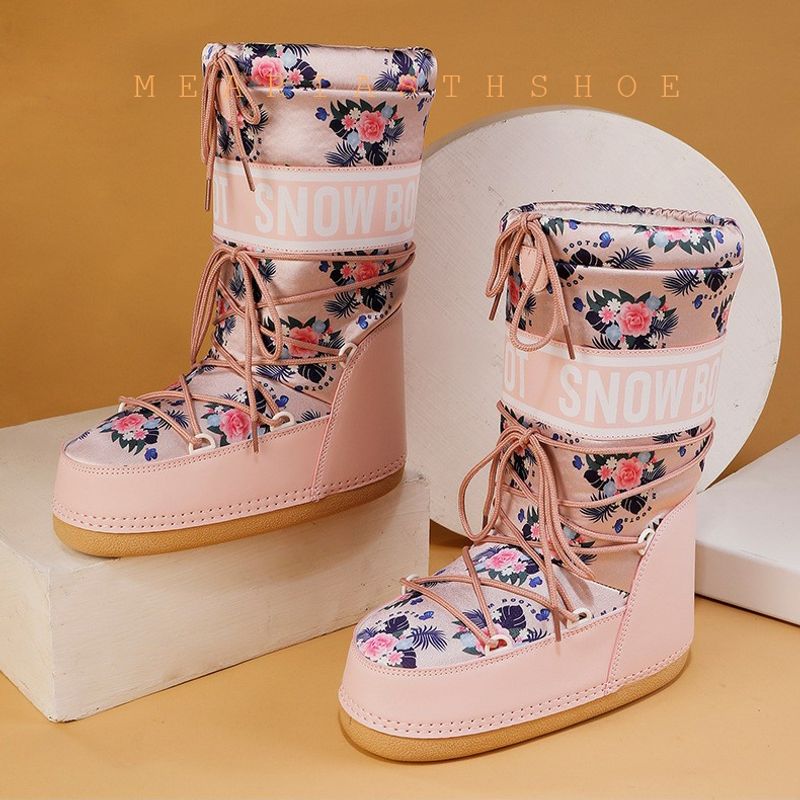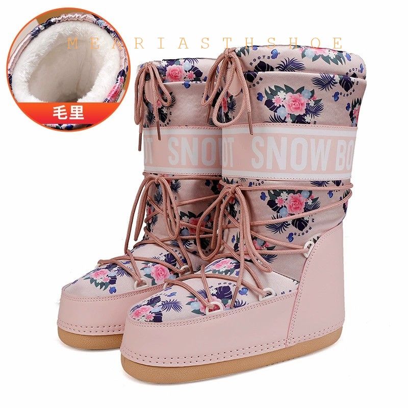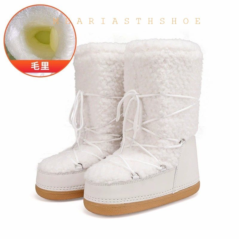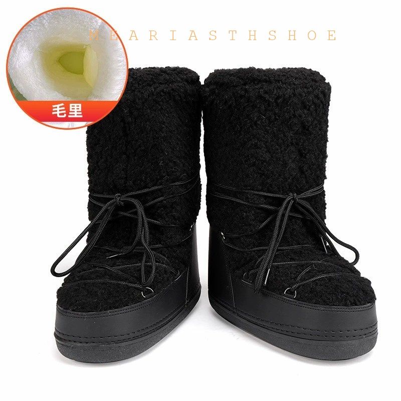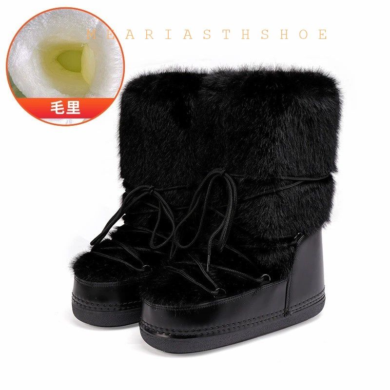 Fashionable round Toe Mid-Calf fur Snow Boots Women's platform Thickened Moon Shoes Winter Skiing Boots round Toe Rubber Sole