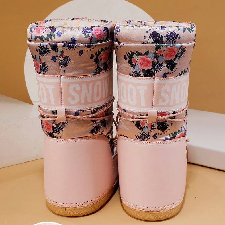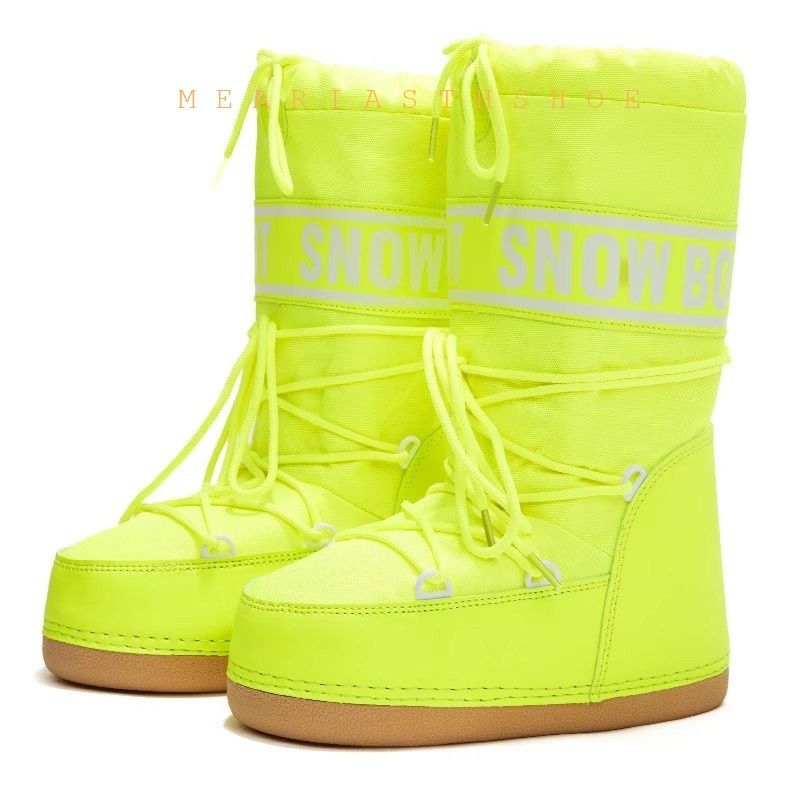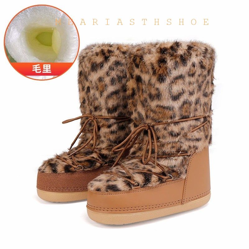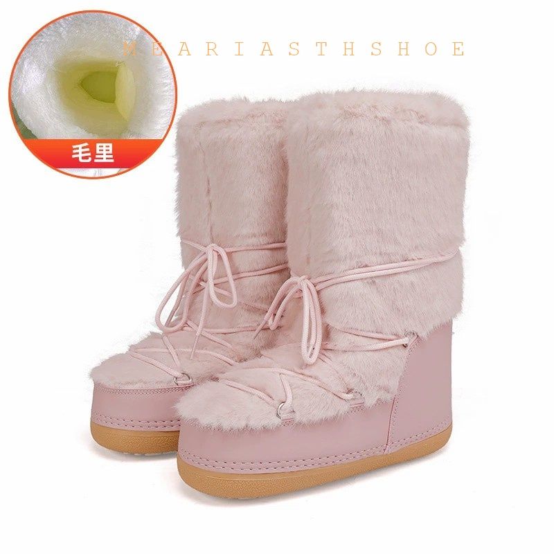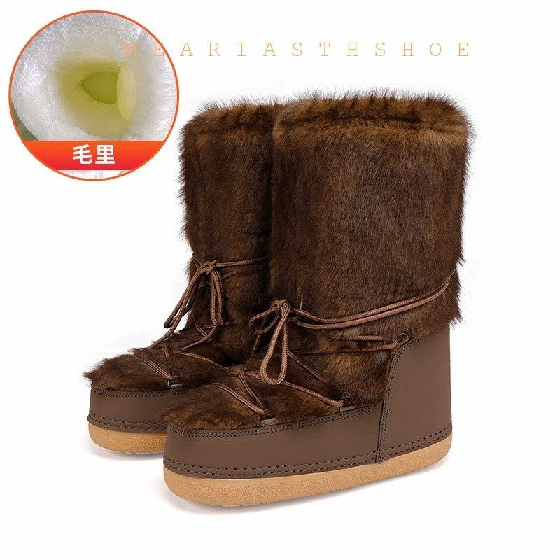 Fashionable round Toe Mid-Calf fur Snow Boots Women's platform Thickened Moon Shoes Winter Skiing Boots round Toe Rubber Sole