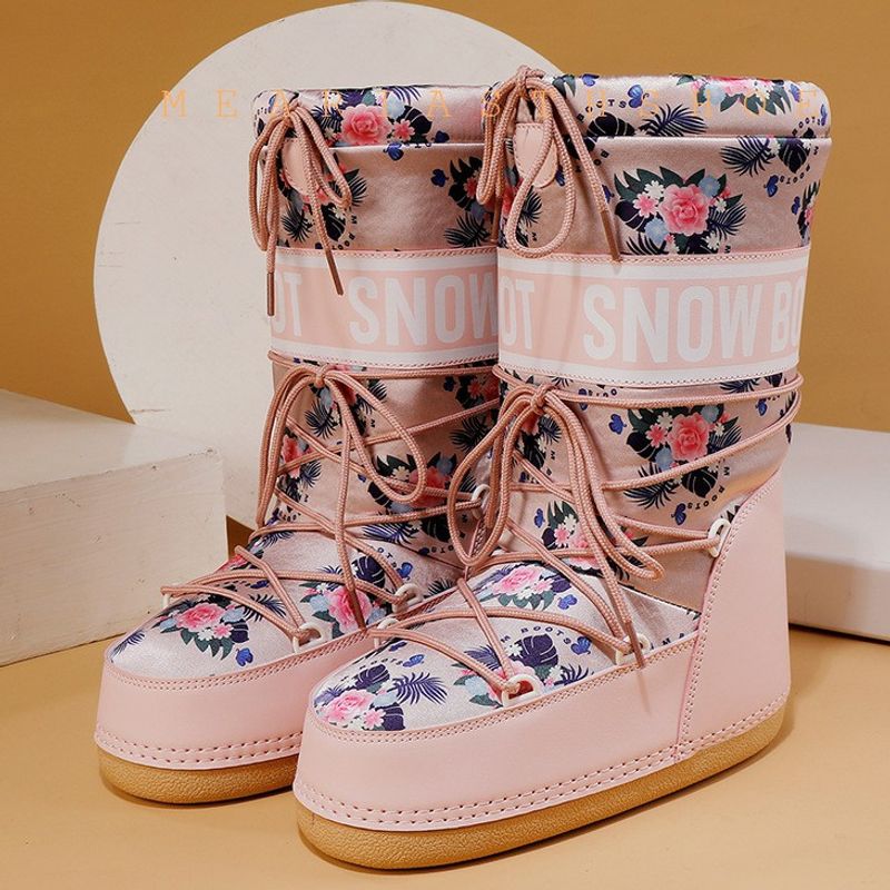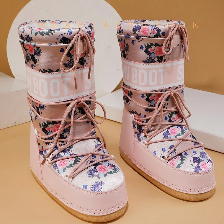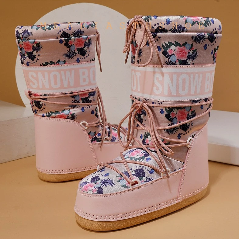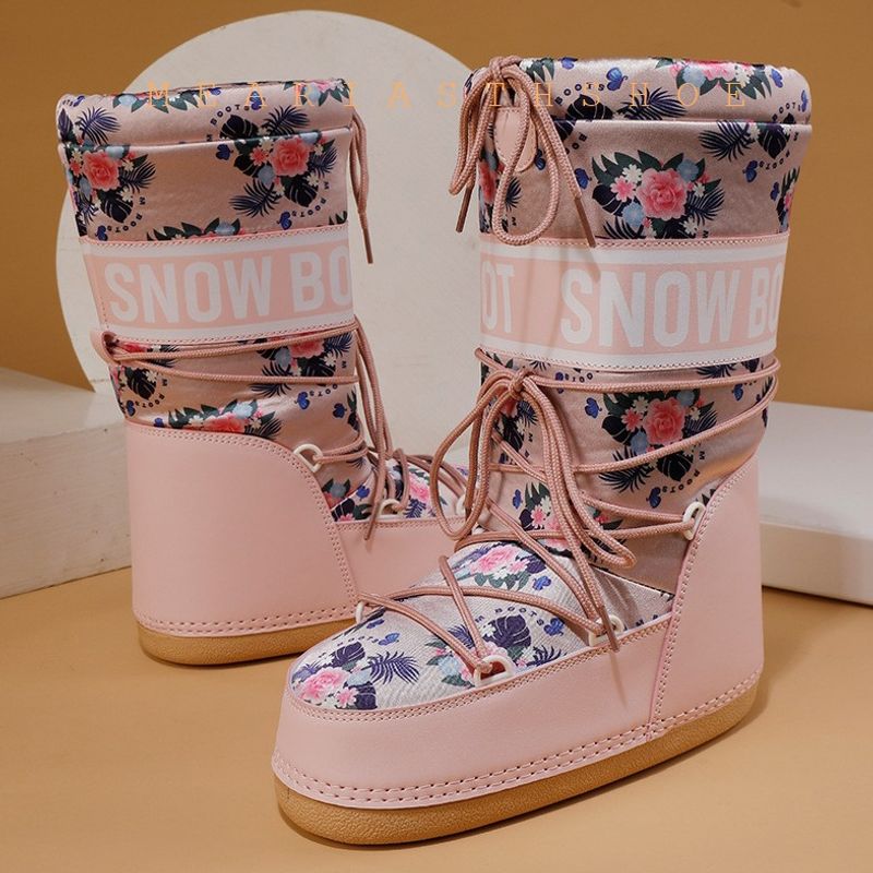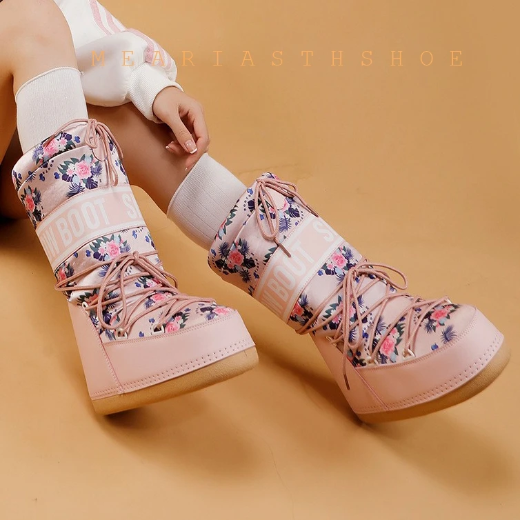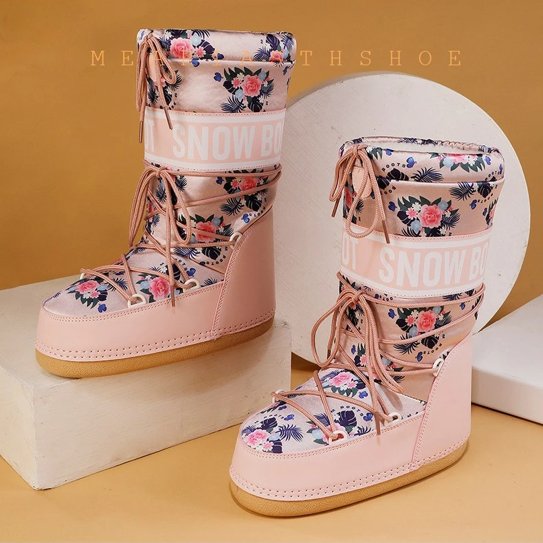 Fashionable round Toe Mid-Calf fur Snow Boots Women's platform Thickened Moon Shoes Winter Skiing Boots round Toe Rubber Sole