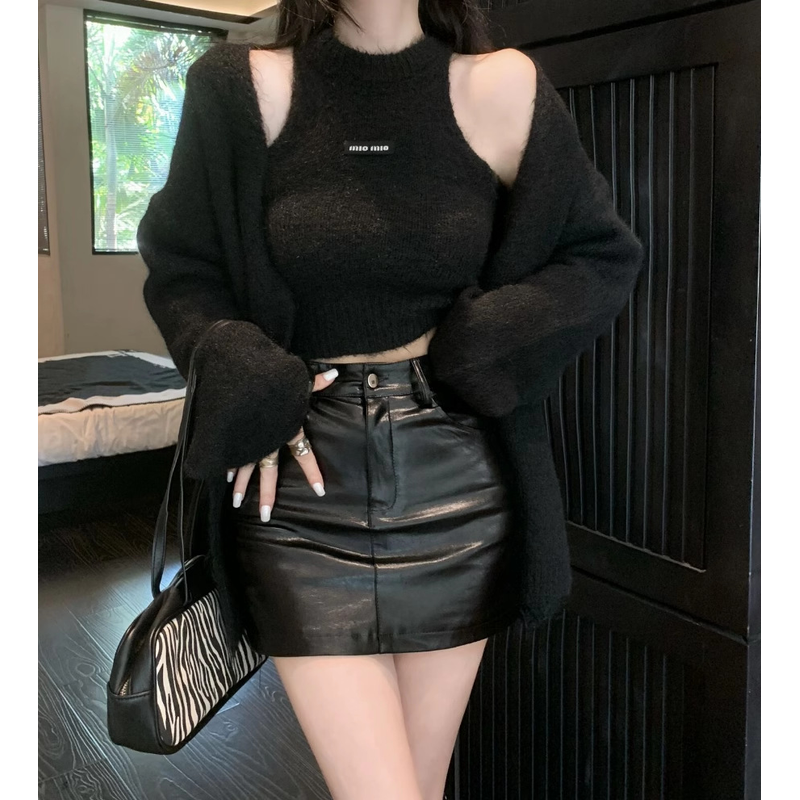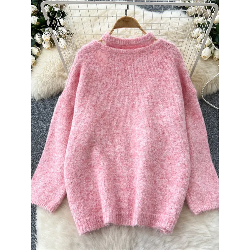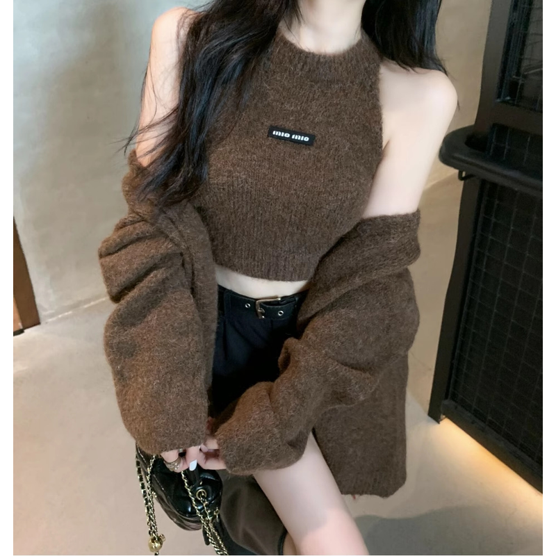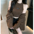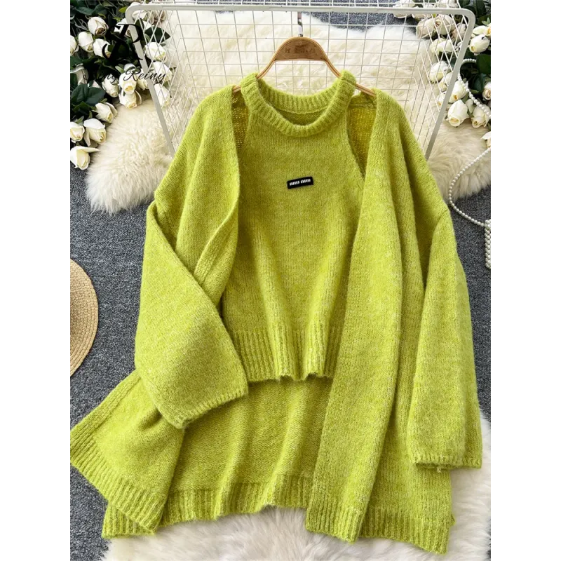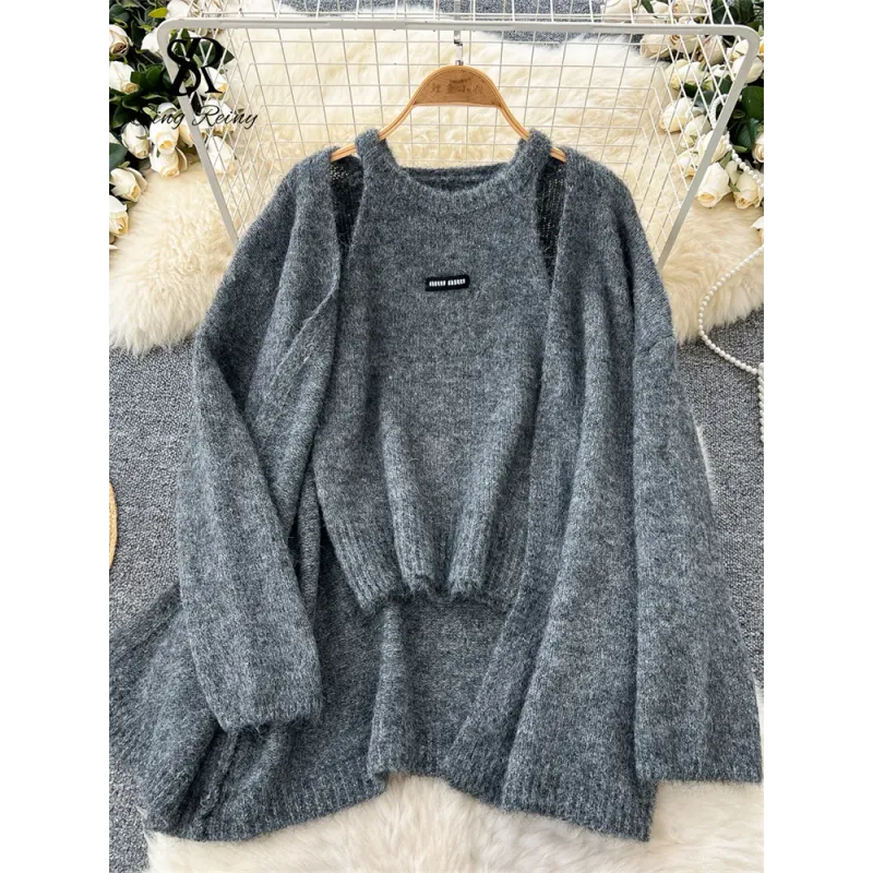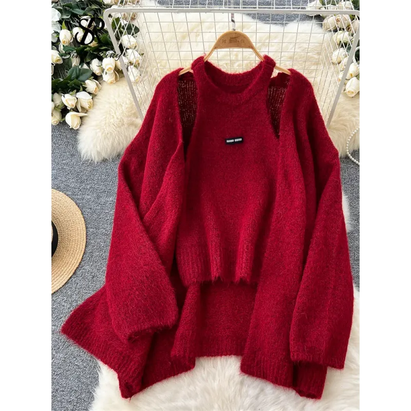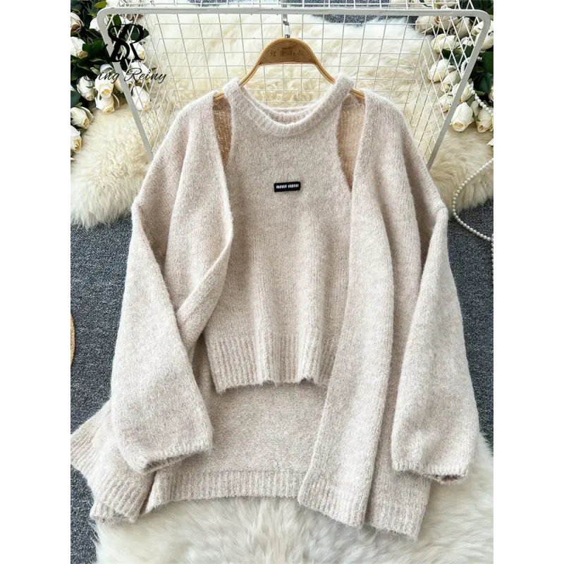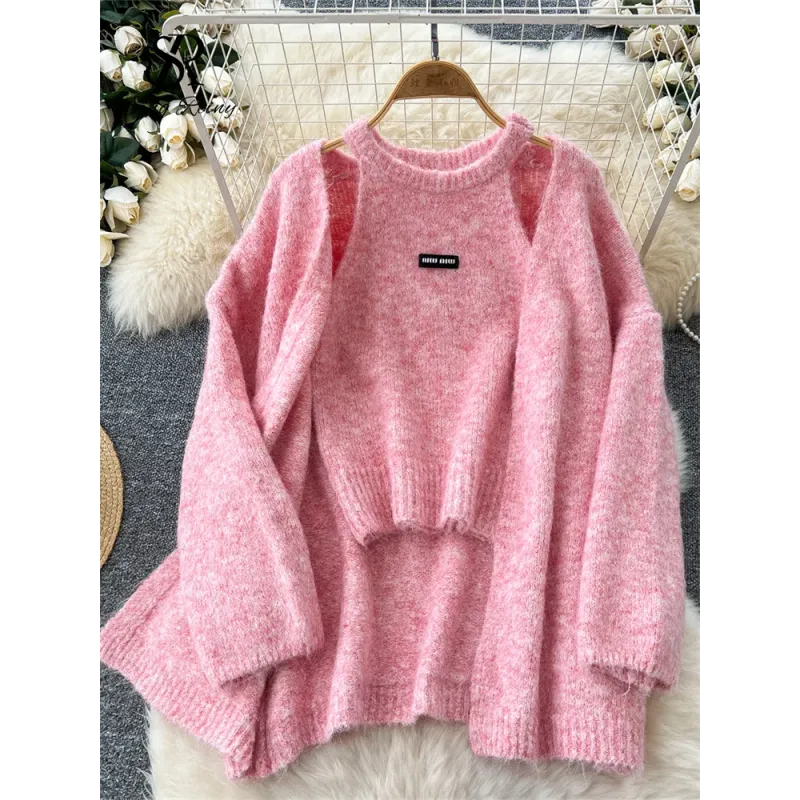 Fashionable Solid Color Cashmere Sweater Long Sleeved Loose Warm Cardigan Sleeveless Knitted Vest Winter Mild Casual Top Lazy