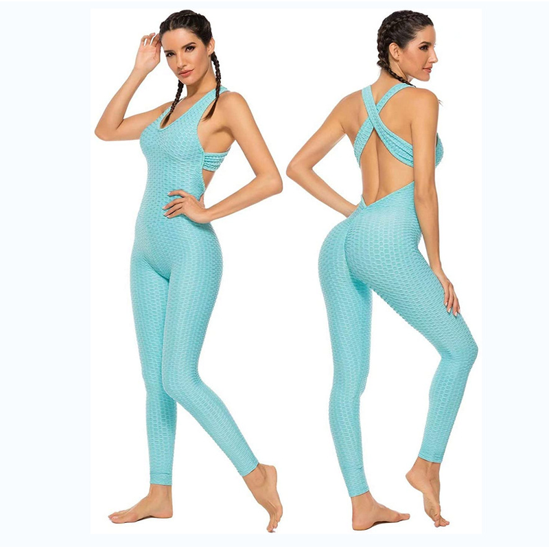 Fashionable Sports Fitness One-piece Suit Belly Lifting Hips Fitness Bubble Tie-dye Jumpsuit C S