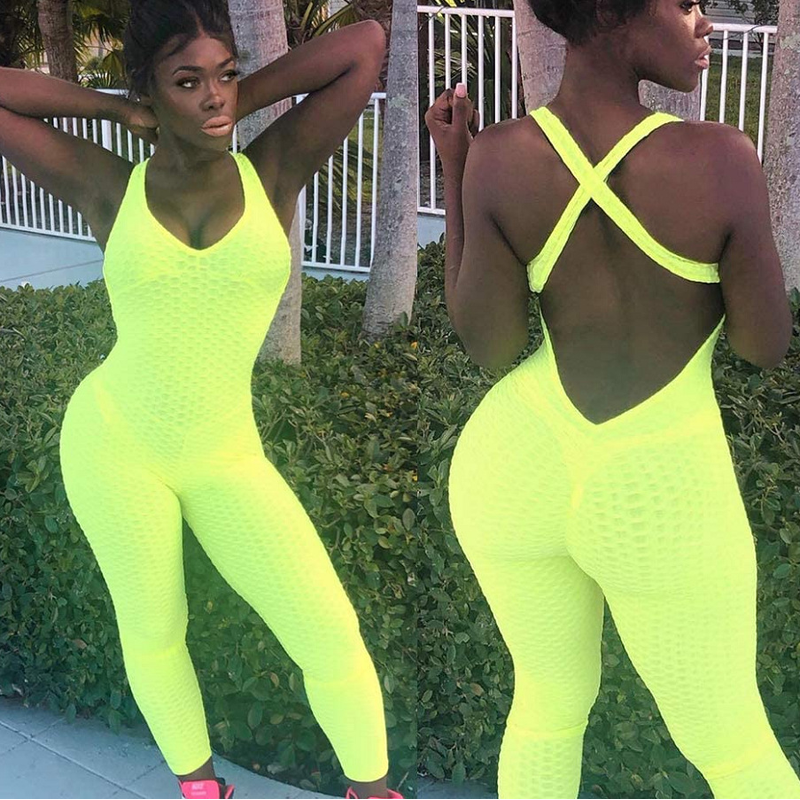 Fashionable Sports Fitness One-piece Suit Belly Lifting Hips Fitness Bubble Tie-dye Jumpsuit G L