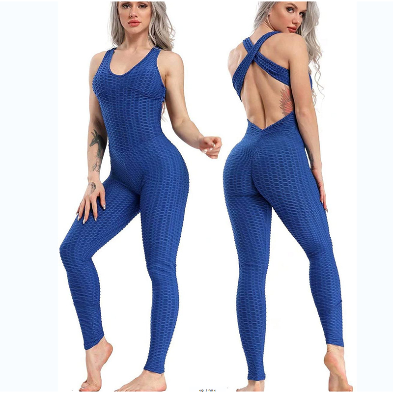 Fashionable Sports Fitness One-piece Suit Belly Lifting Hips Fitness Bubble Tie-dye Jumpsuit H L