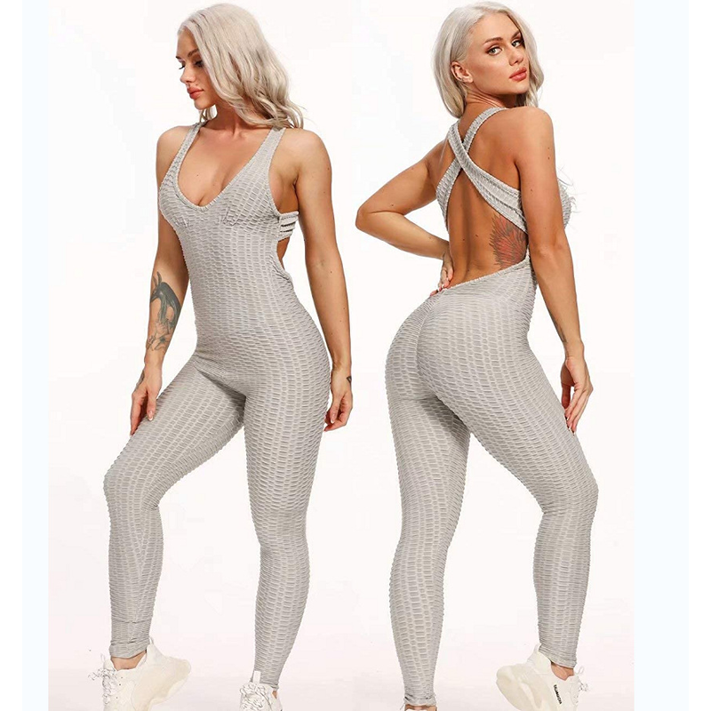 Fashionable Sports Fitness One-piece Suit Belly Lifting Hips Fitness Bubble Tie-dye Jumpsuit I S