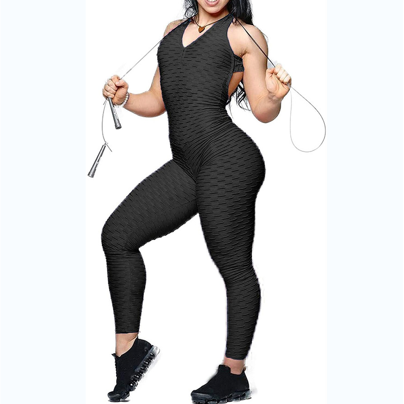 Fashionable Sports Fitness One-piece Suit Belly Lifting Hips Fitness Bubble Tie-dye Jumpsuit J L