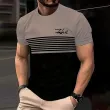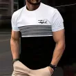 Fashionable striped printed short-sleeved T-shirt 2025 Spring/Summer casual collar crew T-shirt Soft and breathable T-shirt for