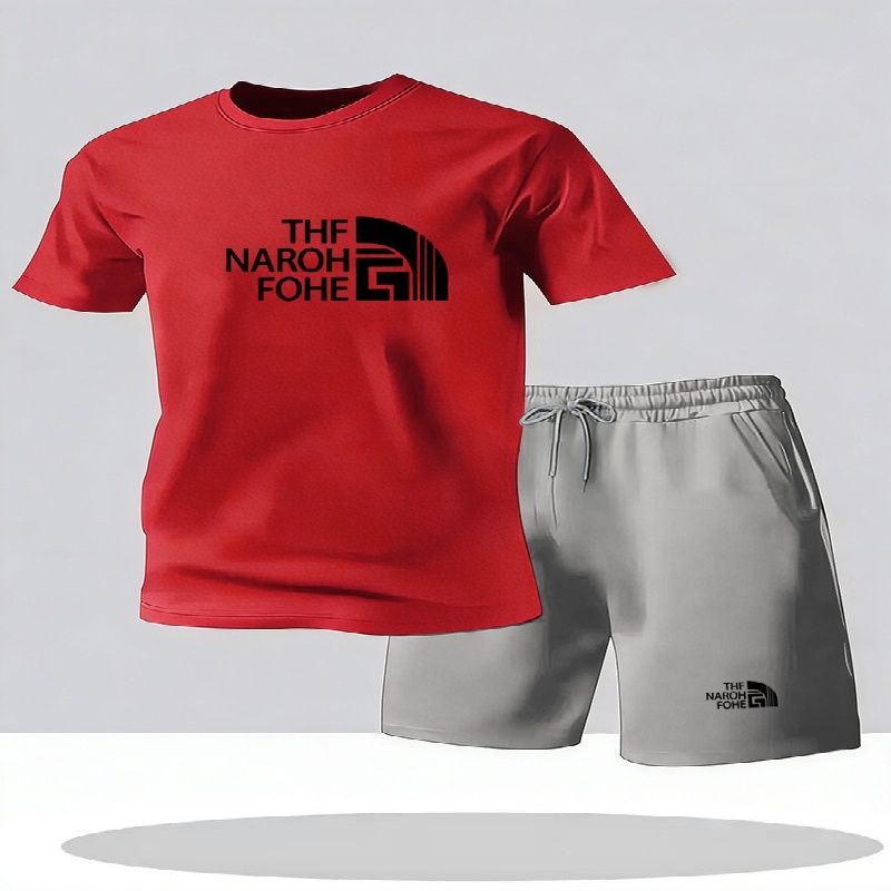 Fashionable summer casual short sleeved T-shirt and shorts set round neck men's short sleeved breathable sports set two-piece