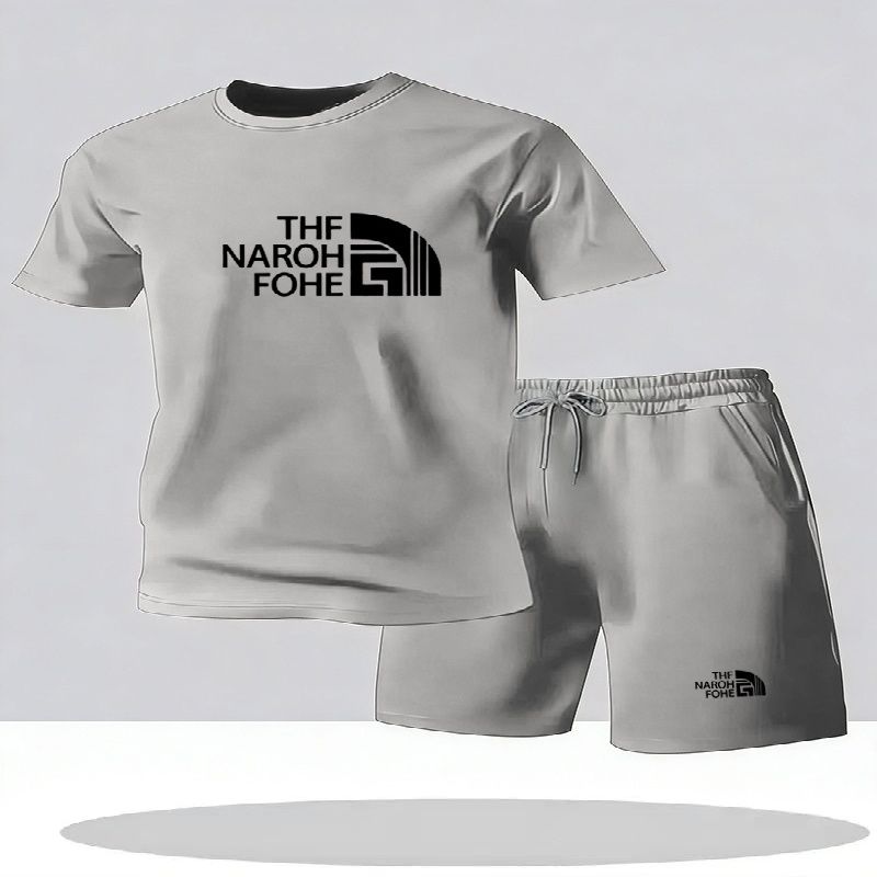 Fashionable summer casual short sleeved T-shirt and shorts set round neck men's short sleeved breathable sports set two-piece