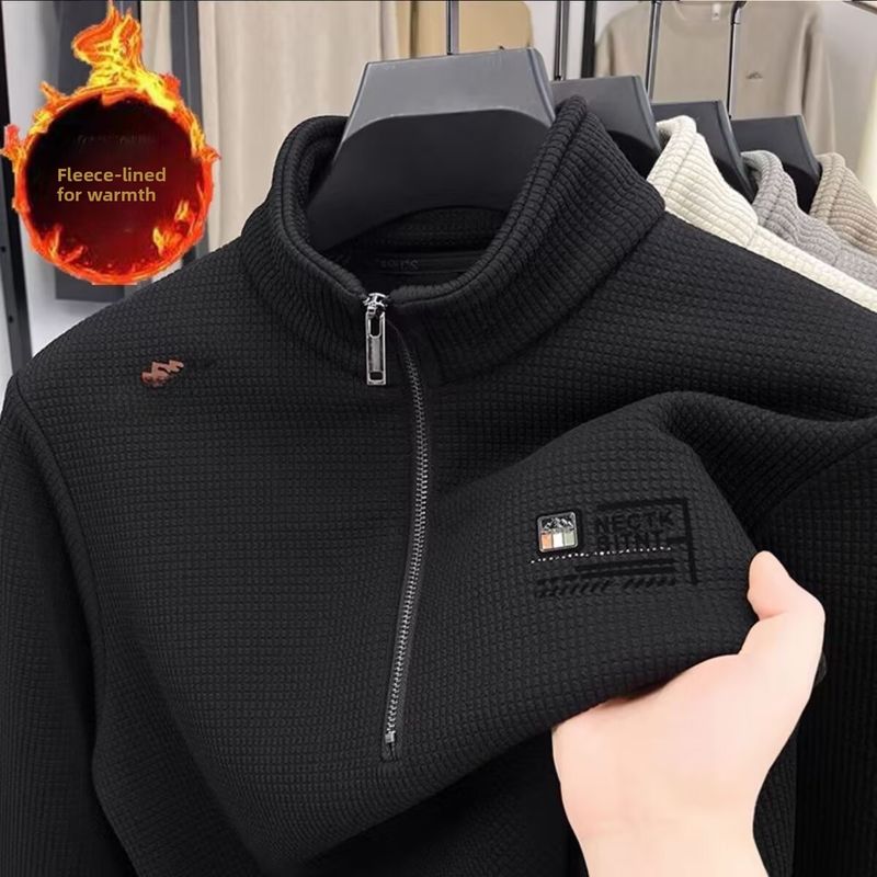 Fashionable Thickened Hoodie Sweatshirt Men's Autumn Winter Half Zip Long Sleeve Fleece Lined Stand Collar Jacket Top