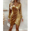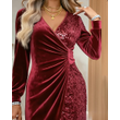 Fashionable V-neck Sequin Velvet Bodycon Dress Blue S