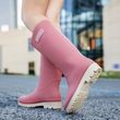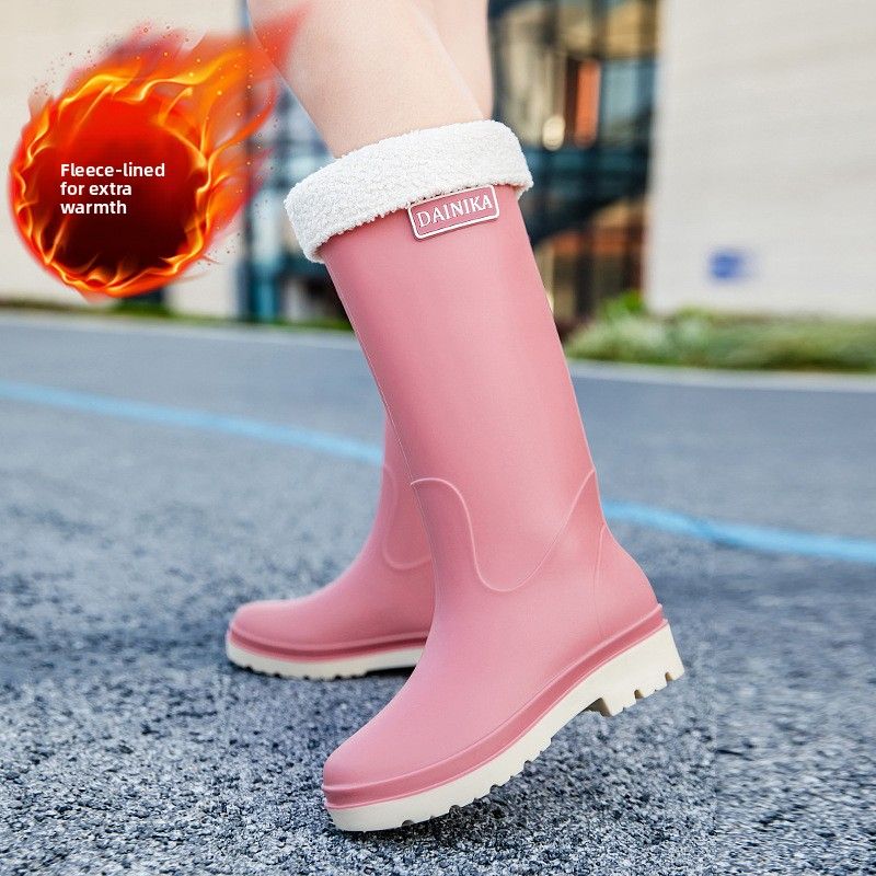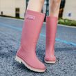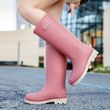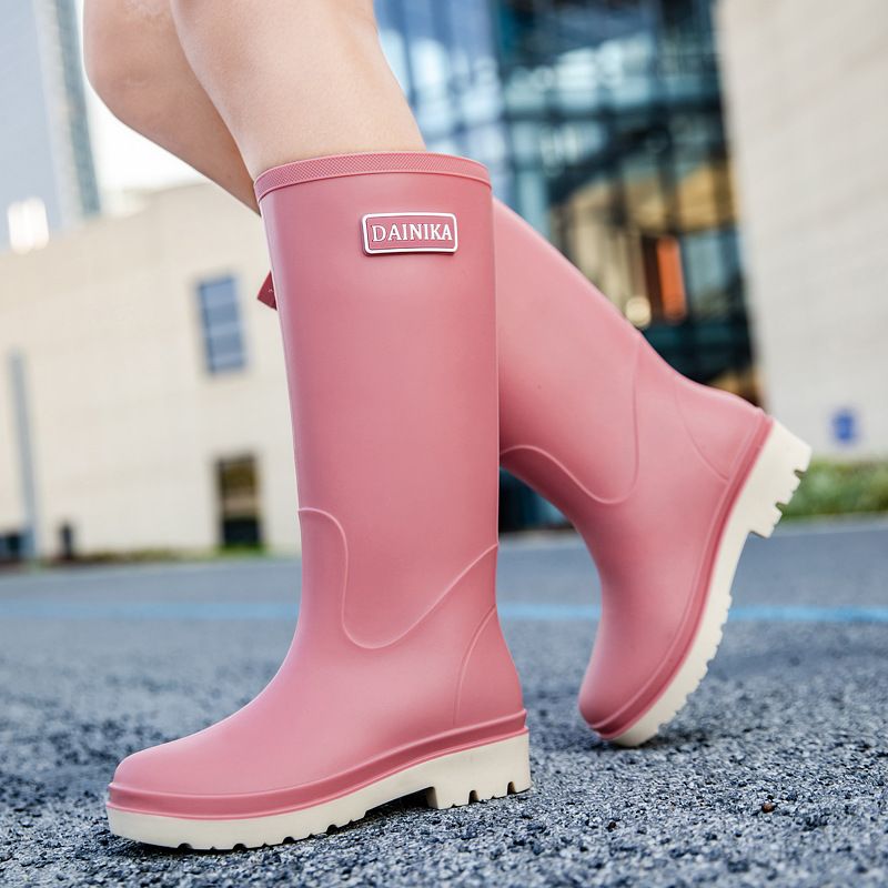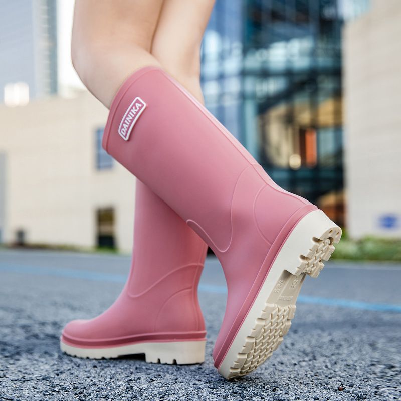 These Korean-style pink rain boots are a fashion statement, perfect for those who love to stay ahead in trends. Their high-tube design adds an extra layer of protection against the elements.