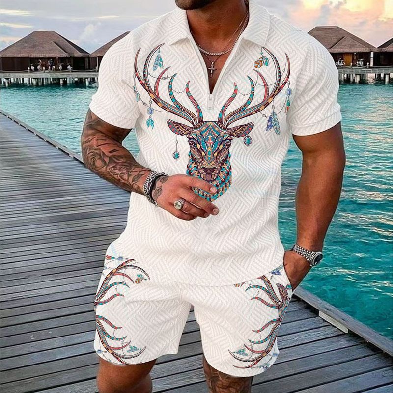 Fashionable Zipper Polo Shirt Suit For Men 1 Style 2XL