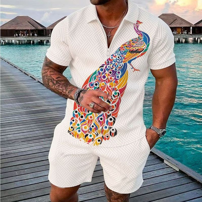 Fashionable Zipper Polo Shirt Suit For Men 3 Style M