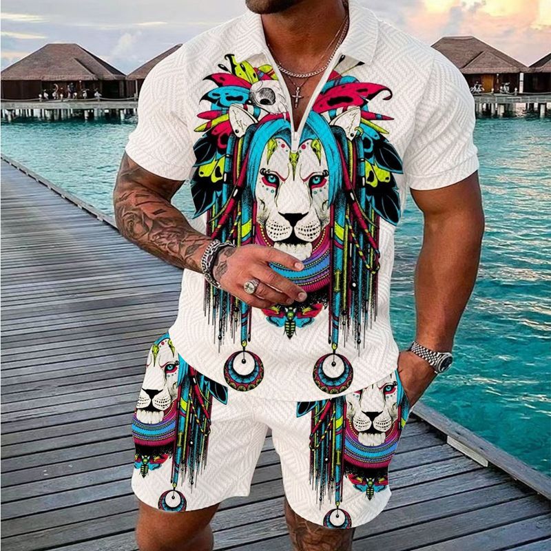 Fashionable Zipper Polo Shirt Suit For Men 5 Style 5XL