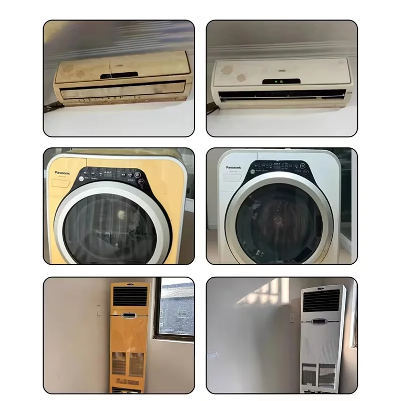 Efficiently removes yellowing from car appliances, restoring their original shine and color.