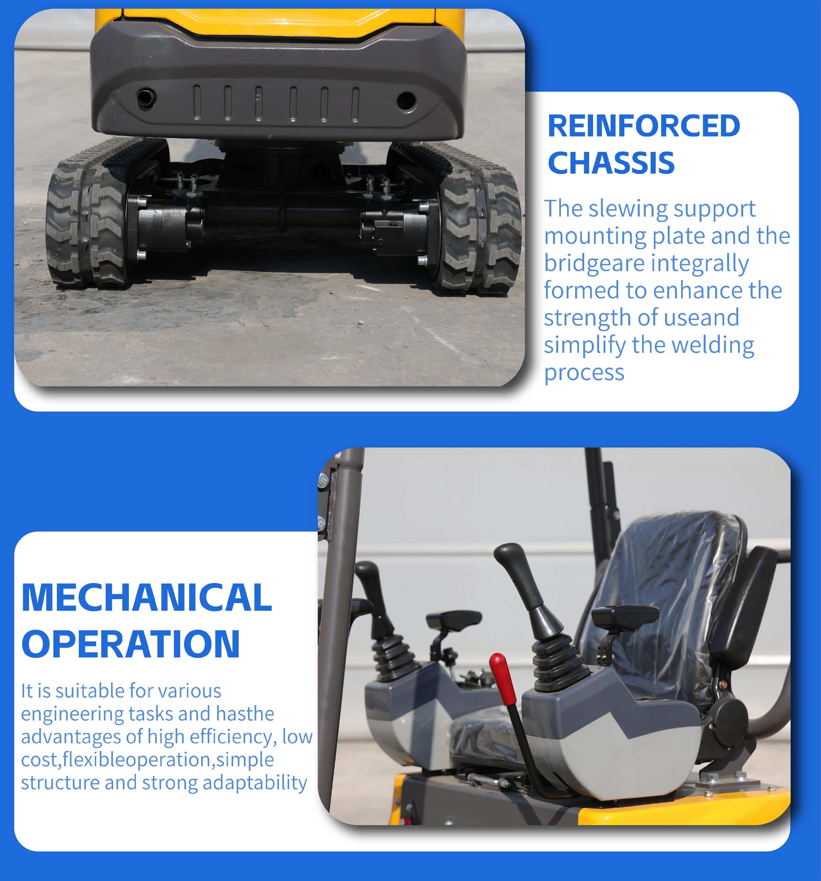 This mini excavator is small and lightweight, functional, easy to operate, so that you save worry and effort, mechanical matching is good, flexible, low cost, efficient and durable.