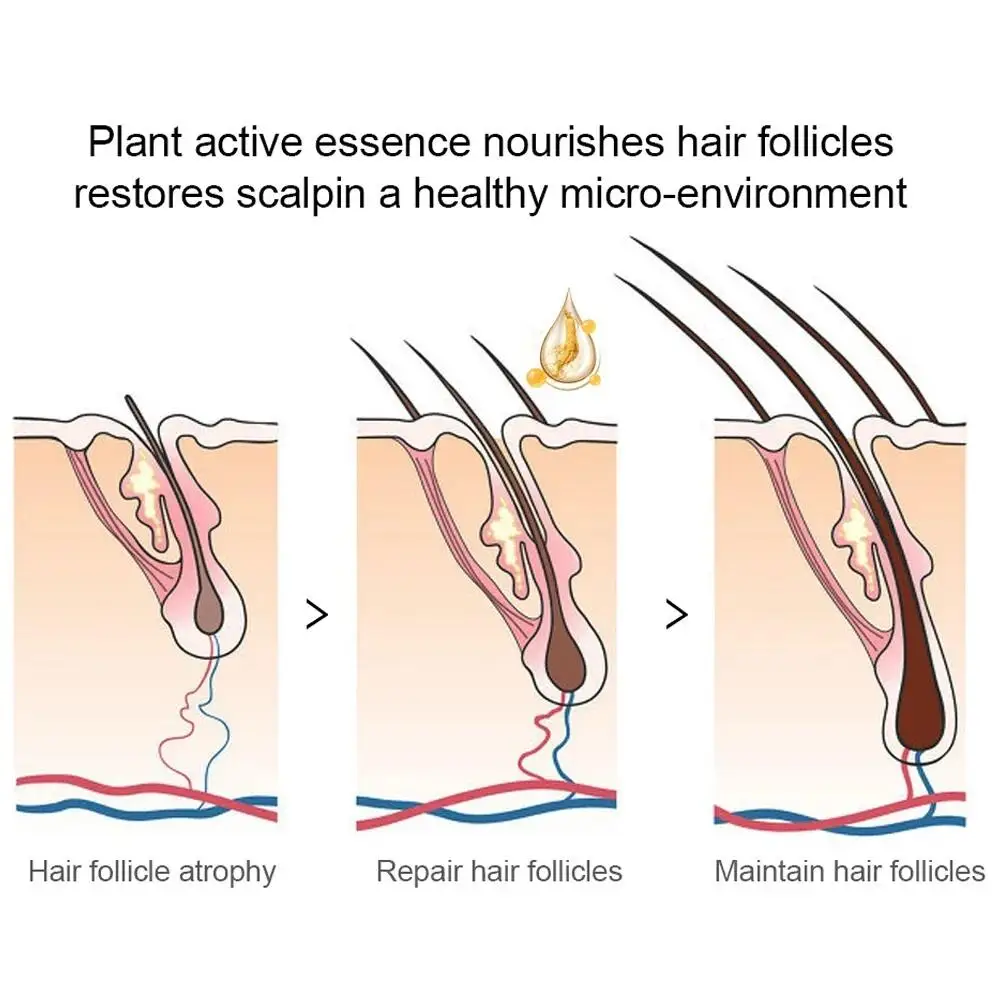 ●2. Essential Oil solves the problem of hair loss and hair growth, activates dormant or aging hair follicles, promotes regeneration, fixes and prevents hair loss, repairs and strengthens the hair follicles, reduces hair loss, promotes the growth of new hair, prolongs the maturity of the hair, and gradually thickens.