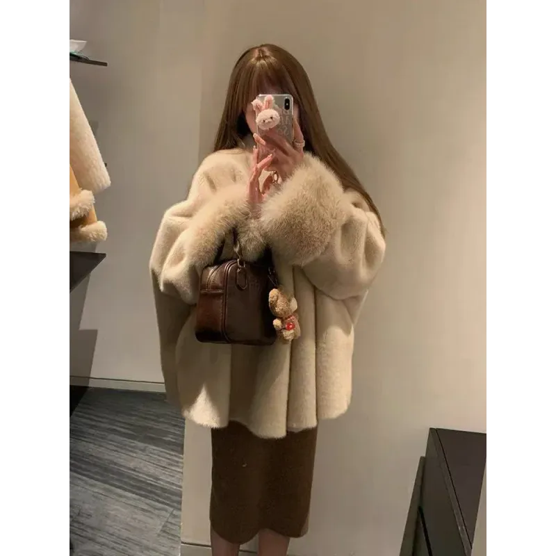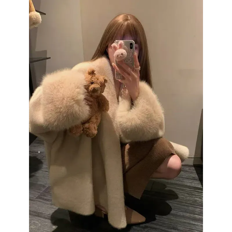 Faux Mink Fur Coat for Women Winter Thick Loose Hairy Casual Jacket Y2K Fashion Streetwear Long Sleeve Warm Fur Outerwear