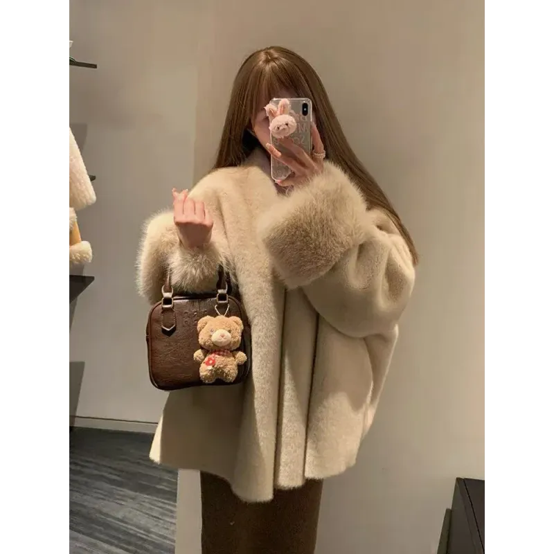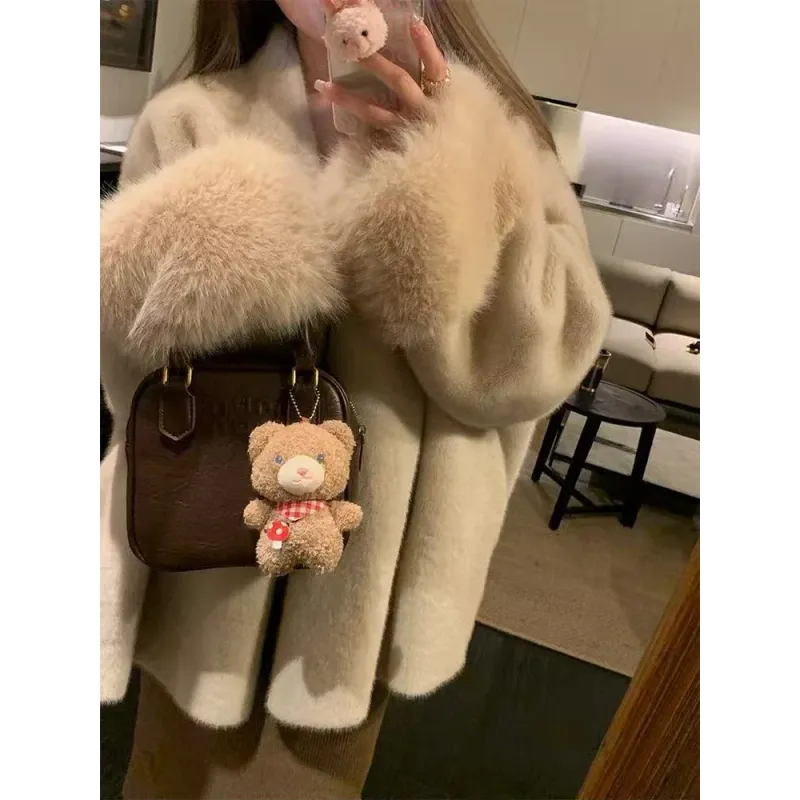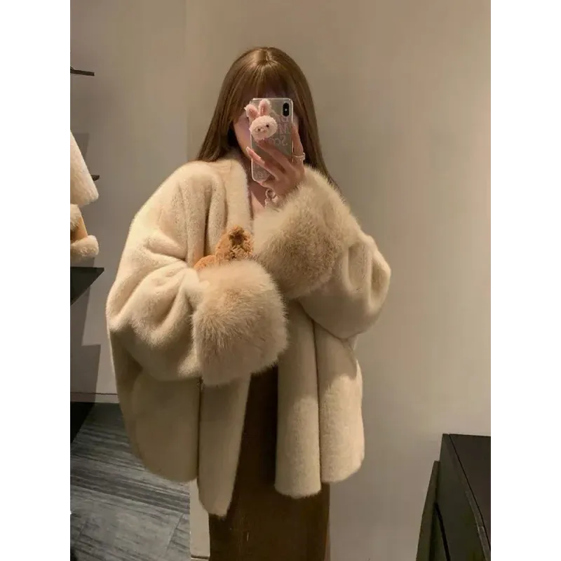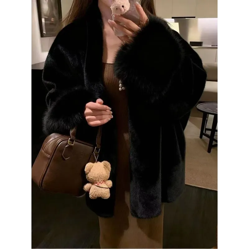 Faux Mink Fur Coat for Women Winter Thick Loose Hairy Casual Jacket Y2K Fashion Streetwear Long Sleeve Warm Fur Outerwear