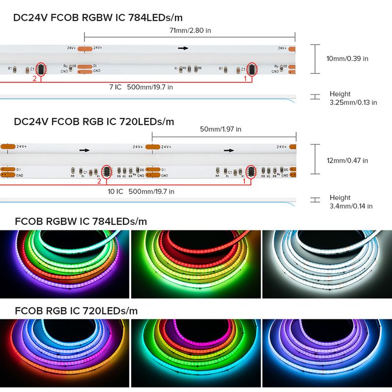 FCOB SPI RGBW IC LED Light Strip WS2814 Addressable 784 LED Dream Color 10mm DC24V SK6812 High Flexible FOB COB Lights RA90 IP30