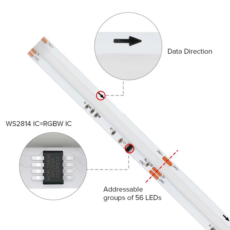FCOB SPI RGBW IC LED Light Strip WS2814 Addressable 784 LED Dream Color DC24V SK6812 High Flexible FOB COB Lights RA90 IP30