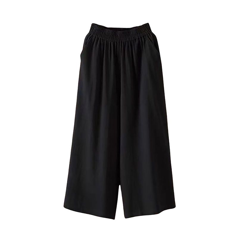 Feamle Casual and Versatile Lazy Style Wide Leg Pants With Pockets Lightweight High Waisted Loose Cropped Capris