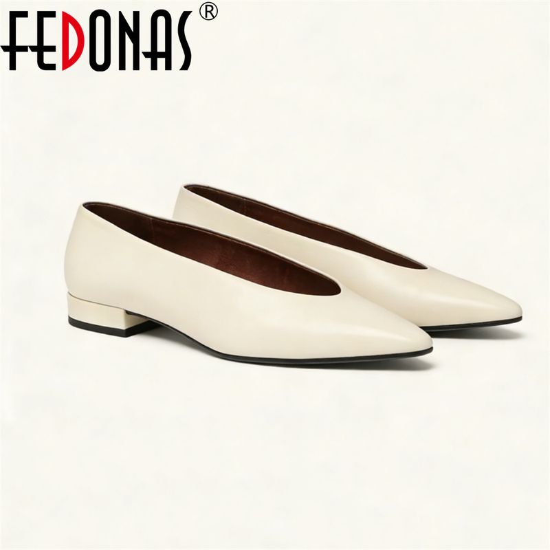 FEDONAS Classic Women Genuine Leather Pumps Thick High Heeled Soft Leather Office Pumps Pointed Toe Party Wedding Shoes Woman