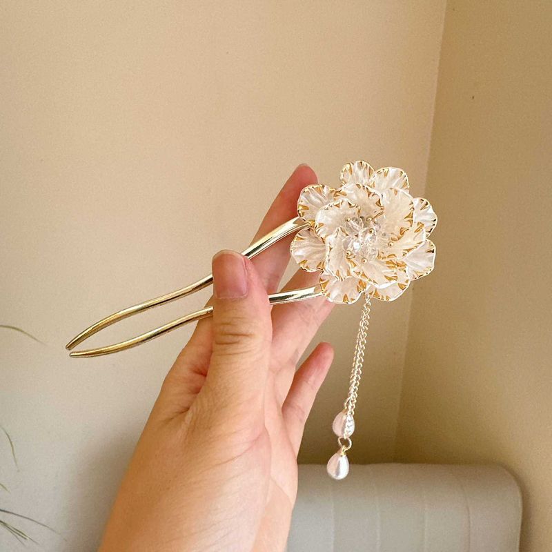 Color: purple peony U-shaped barrettes, White Peony U-shaped barrettes