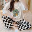 Female Summer Short Sleeve Trousers Casual Homewear Suit White Dumb Bear XXL