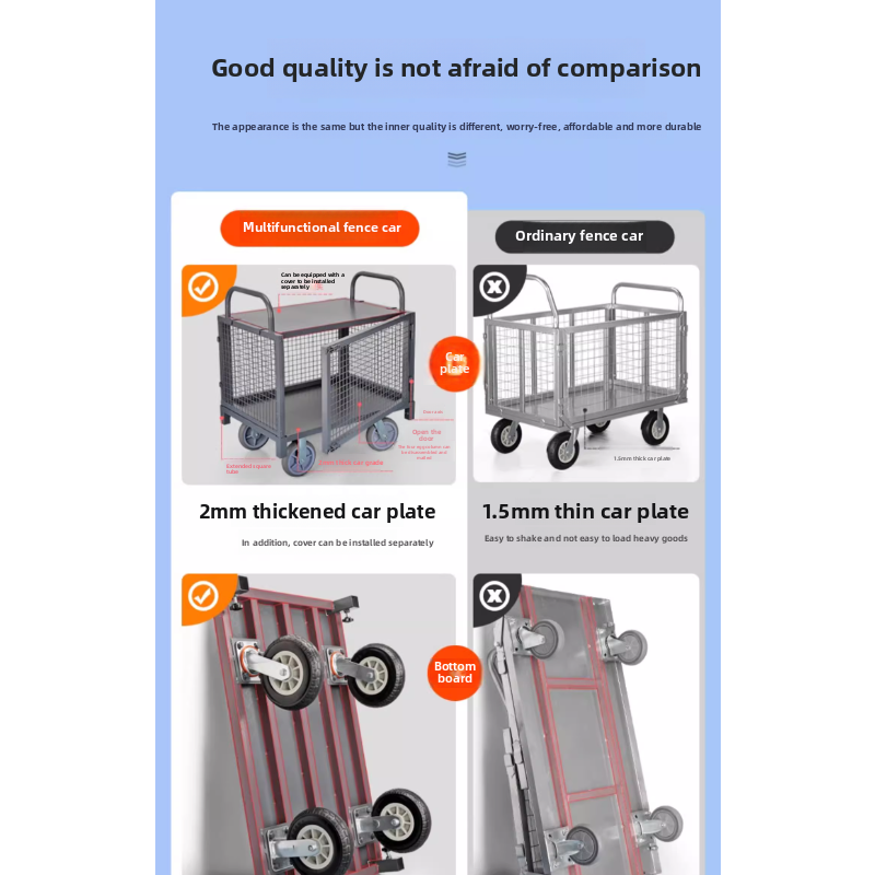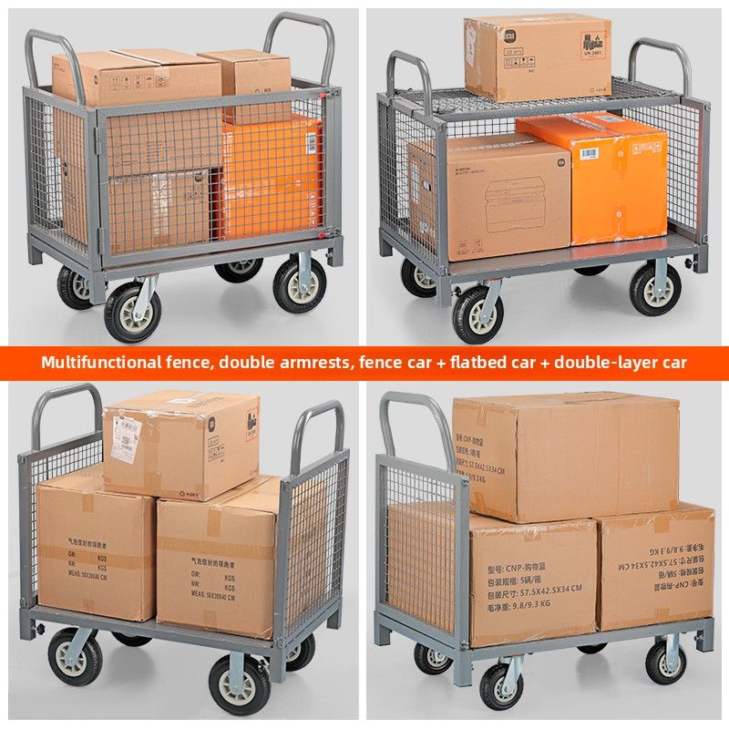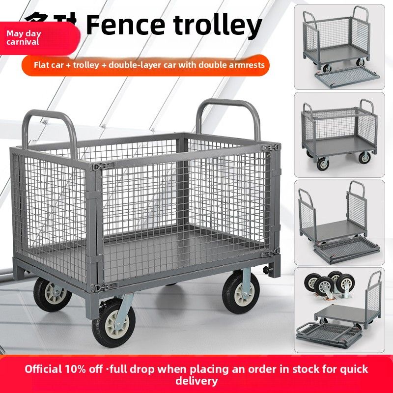 Fence trolley truck pick-up truck with guardrail flat trolley push truc pull goods stall trolley