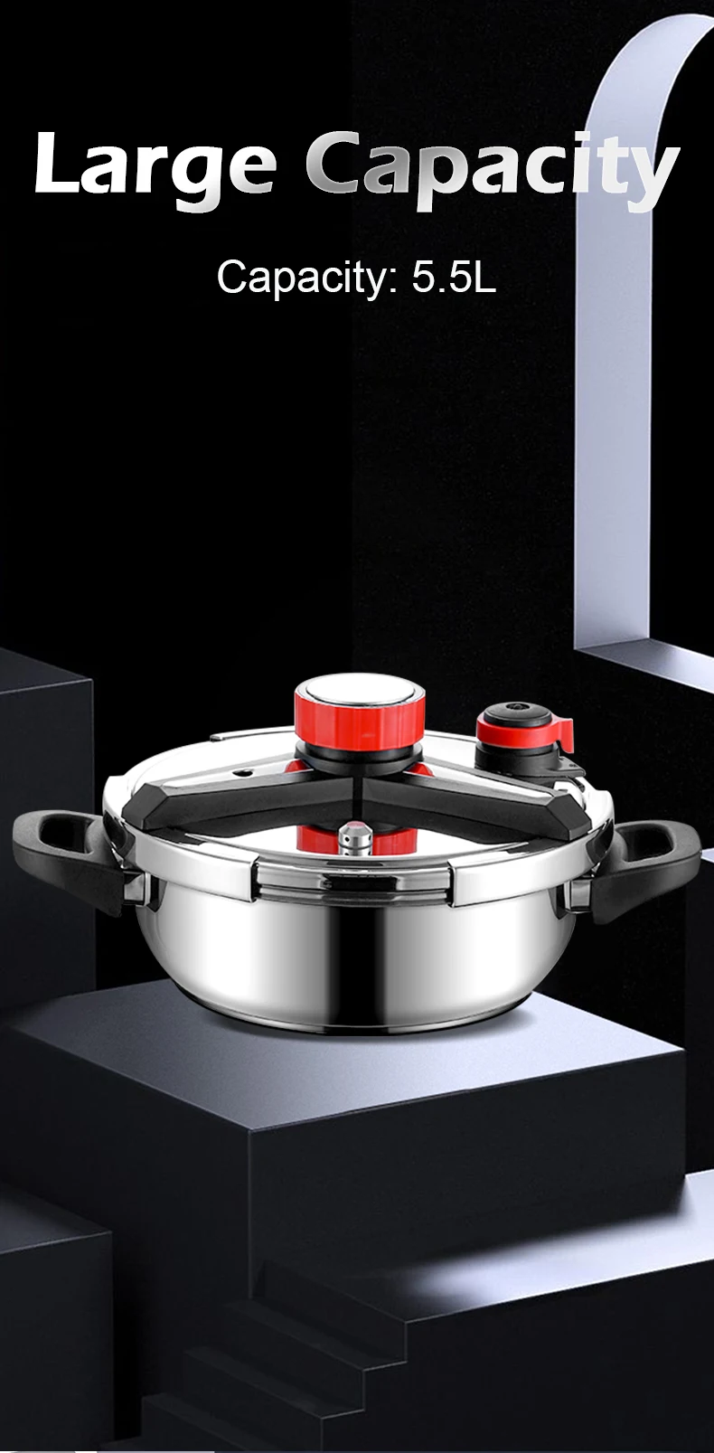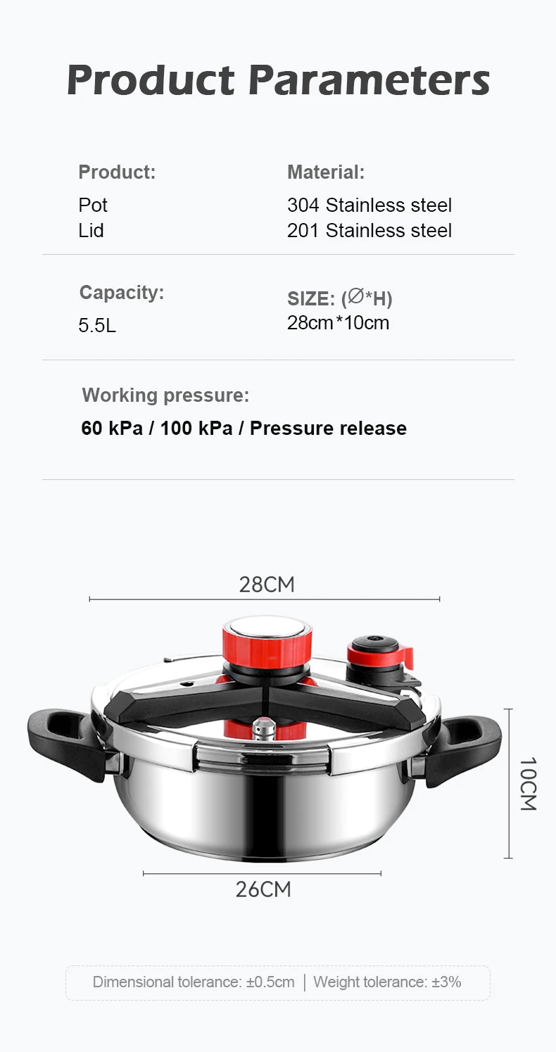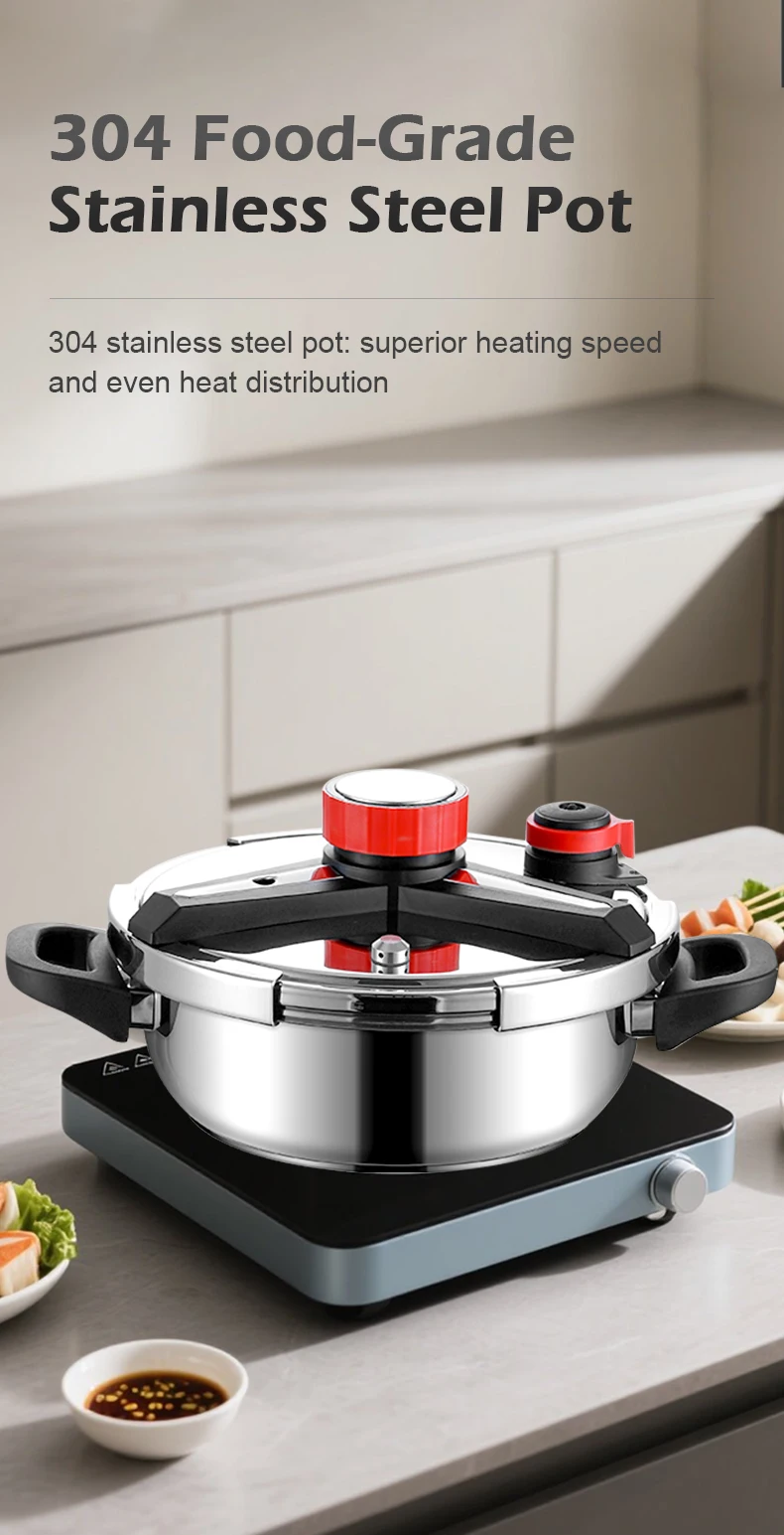 Fenghui 5.5L 304 Stainless Steel Pressure Cooker CE Certified Explosion-Proof Safe Fast-Cooking Cookware for Kitchen