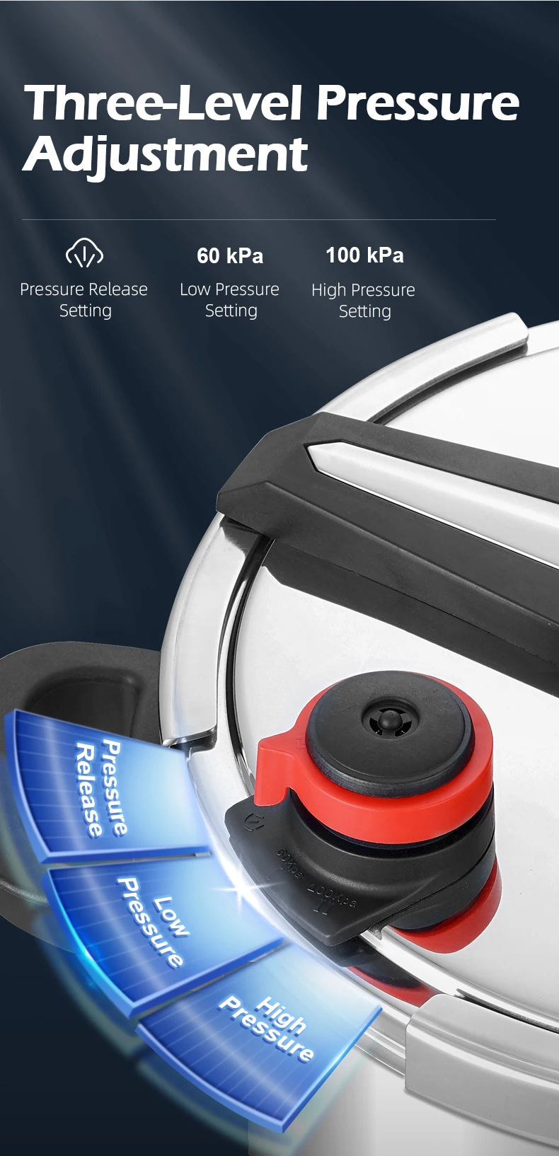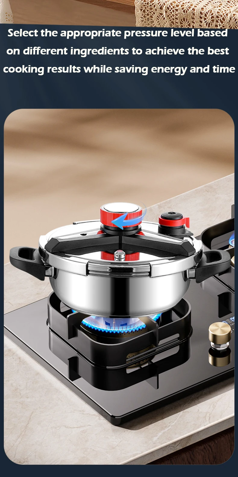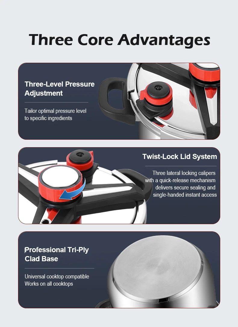 Fenghui 5.5L 304 Stainless Steel Pressure Cooker CE Certified Explosion-Proof Safe Fast-Cooking Cookware for Kitchen