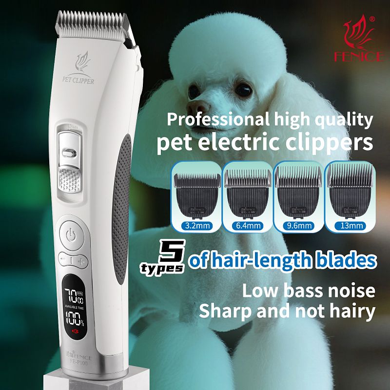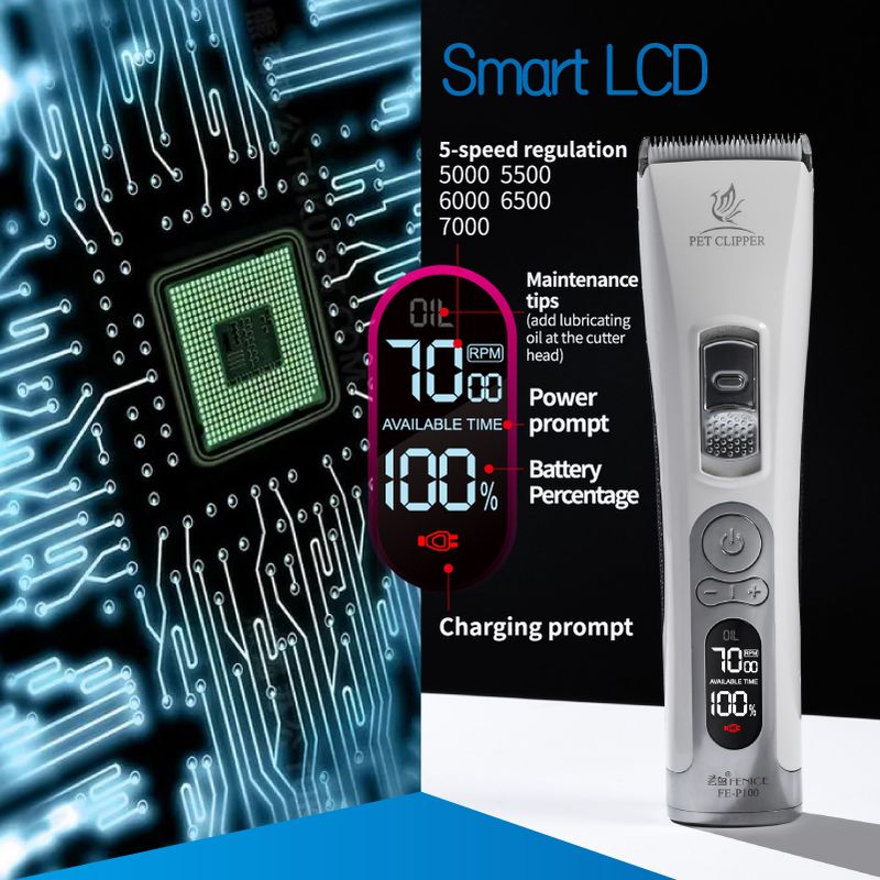 Fenice P100 Professional LCD Screen Dog Cat Clippers 4000mA Electrical Grooming Trimmer and Blade Rechargeable Haircut Machine