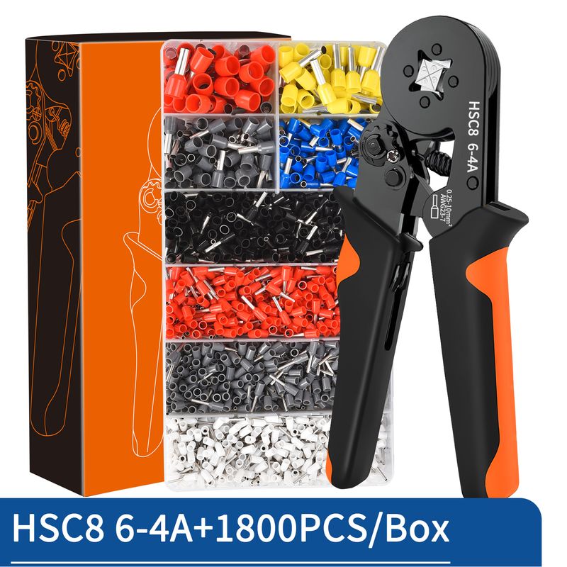 Ferrule Crimping Tool Kit with Tubular Wire Connectors Hexagonal AWG23-7 Sawtooth Self-Adjustable Ratchet Wire Terminals Crimper Kit