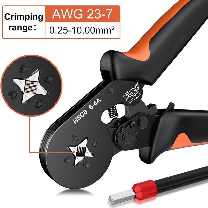 [Crimping Tool Peculiarity] – Durable and compact structure,for insulated and uninsulated connectors, the crimping area is 0.25-10 mm², AWG 23-7.