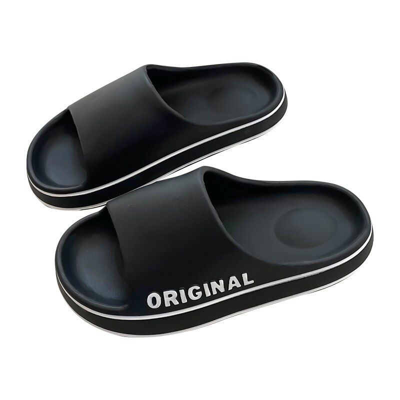 Feslishoet Women Letter Slippers Beach Slides Solid Color Mens Thick Sole Indoor Bathroom Anti Slip Shoes Summer Couple Sandals