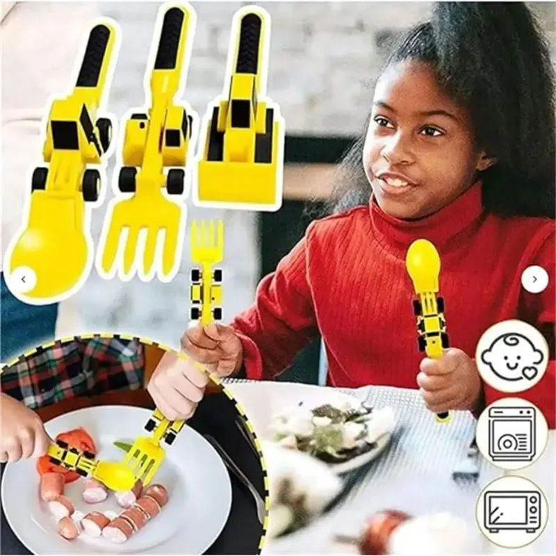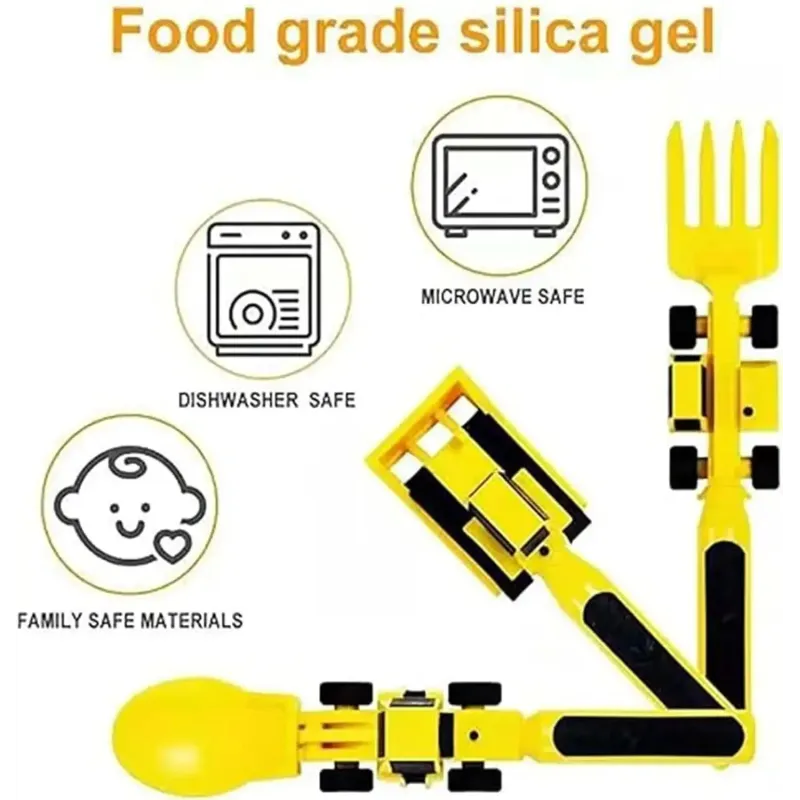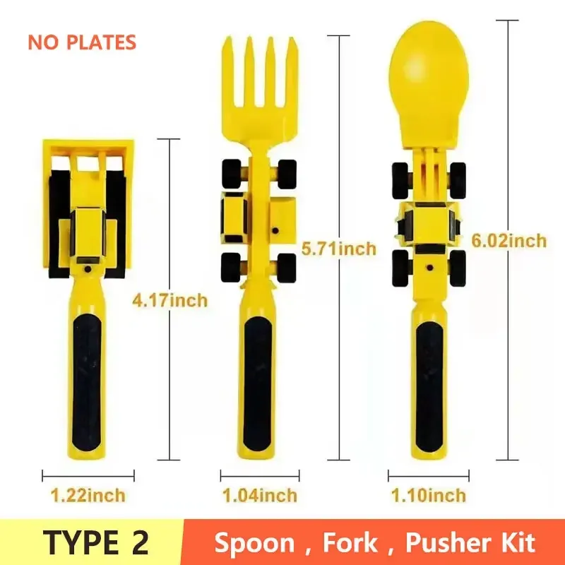 Festival Kids Tableware Car Bulldozer Excavator Shovel Plate Fork Spoon Dinnerware Set Children Tableware Kitchen Gadget BPA Free