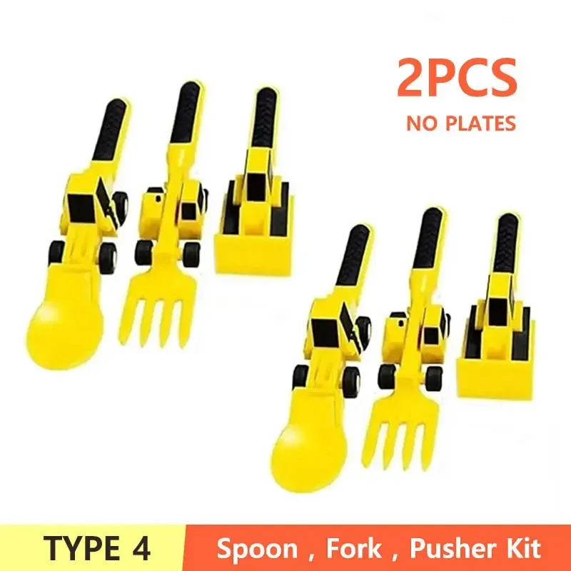 Festival Kids Tableware Car Bulldozer Excavator Shovel Plate Fork Spoon Dinnerware Set Children Tableware Kitchen Gadget BPAFree
