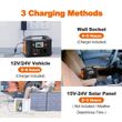 FlashFish power station is equipped with a lithium battery pack, it can be charged by the 15-24 volt solar panel (not included), AC wall adapter and car charger efficiently. No memory effect, no worry about battery capacity reduction.