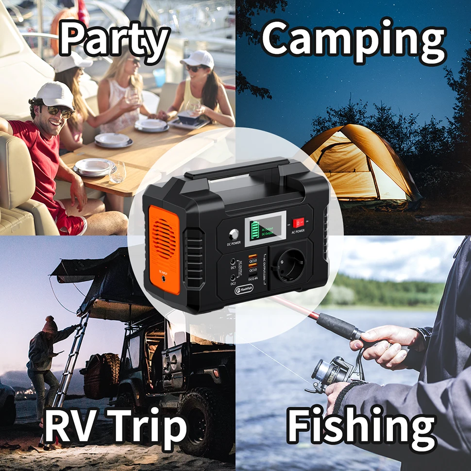 FlashFish power station is equipped with a lithium battery pack, it can be charged by the 15-24 volt solar panel (not included), AC wall adapter and car charger efficiently. No memory effect, no worry about battery capacity reduction.