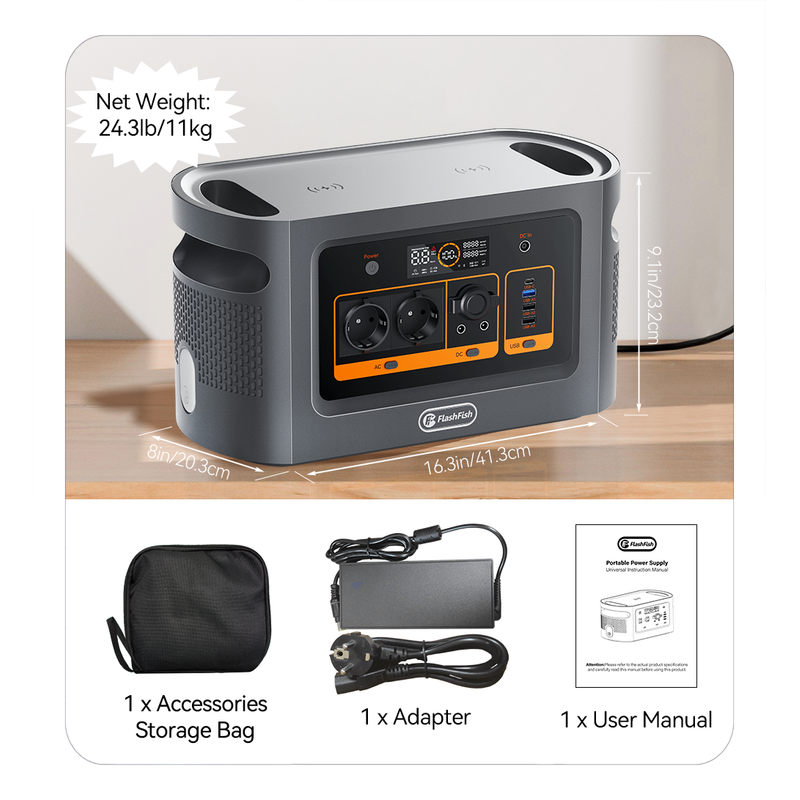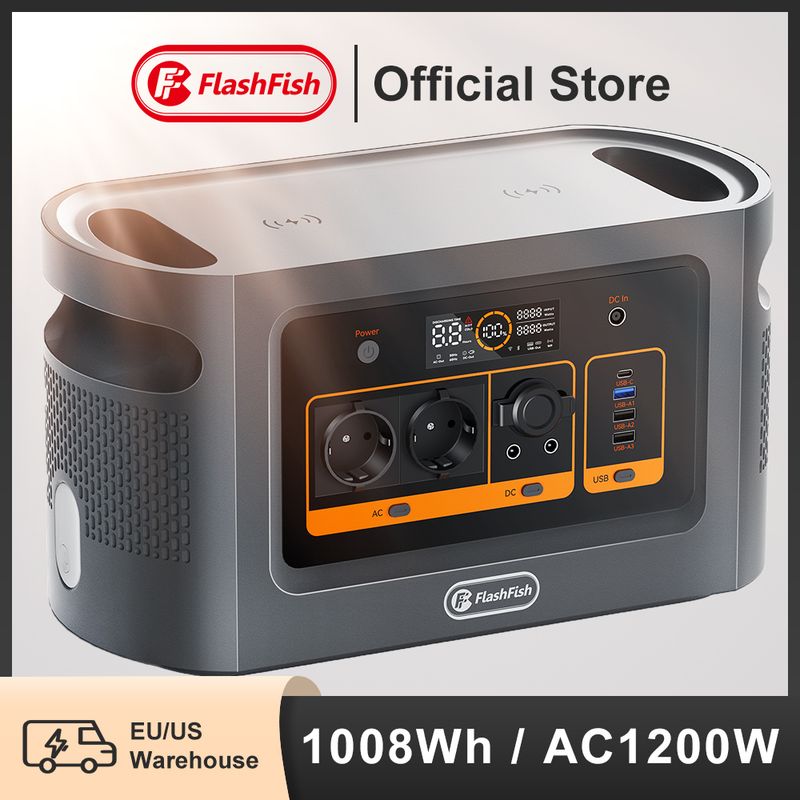FF Flashfish QE02D Rechargeable Portable Power Station 1008Wh 1200W 315000mAh/3.2V Solar Generator Outdoor Pure Sine Wave UPS