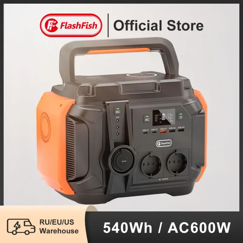 FF Flashfish Solar Generator 230V 600W Portable Power Station 540WH Battery 150000mAh/3.6V for Home Outdoor Camping Drone EU