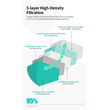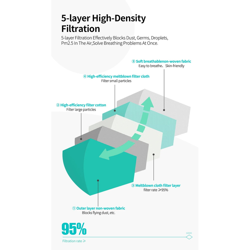 * Special 5 ply non-woven design, provides protections against dust, automobile exhaust, pollen, etc.