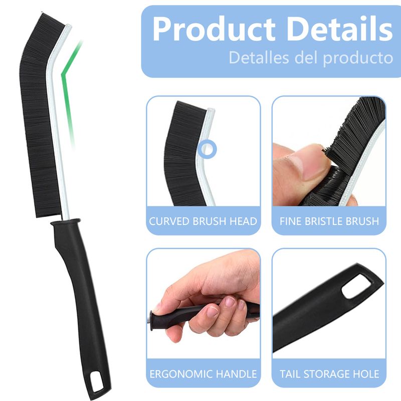 Wide Application: This tiny scrub brush is suitable for cleaning various crevices and corners, including faucets and tub grout, shower door grooves, toilet seat crevices, floor tile grout, sliding glass door tracks, sink and washing machine crevices, refrigerator interiors, window seals, lime scale around faucets, window tracks, kitchen stove tops, car window sills, keyboard gaps, and more