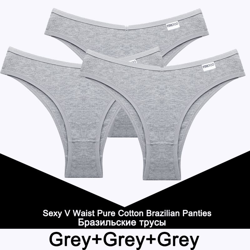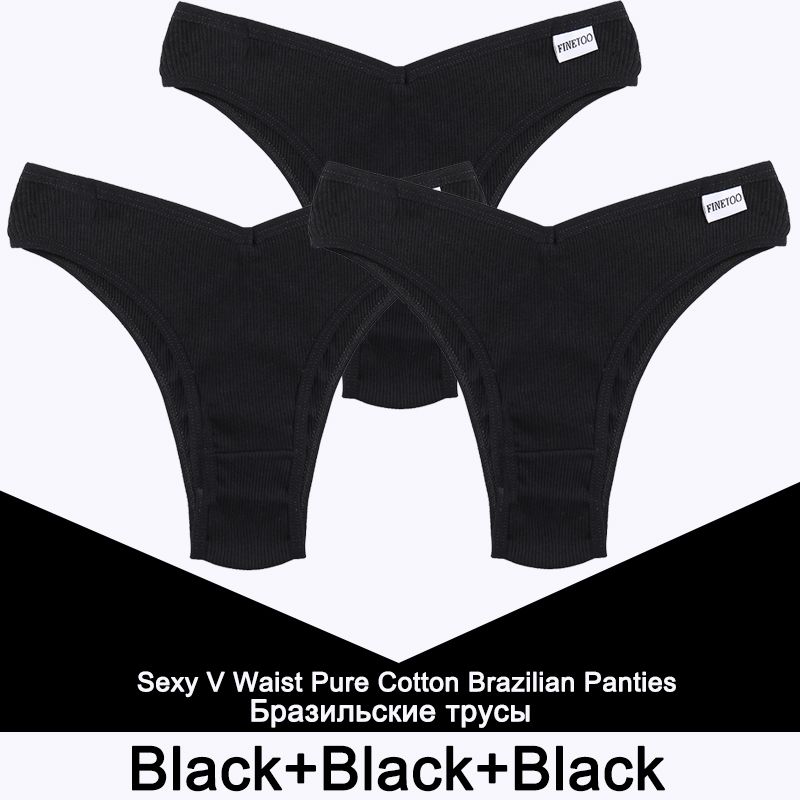 FINETOO 3PCS/Set Panties Women Cotton Lingerie Female Thongs Sexy Underwear Low-Rise Underpant Bikini Brazilian Briefs