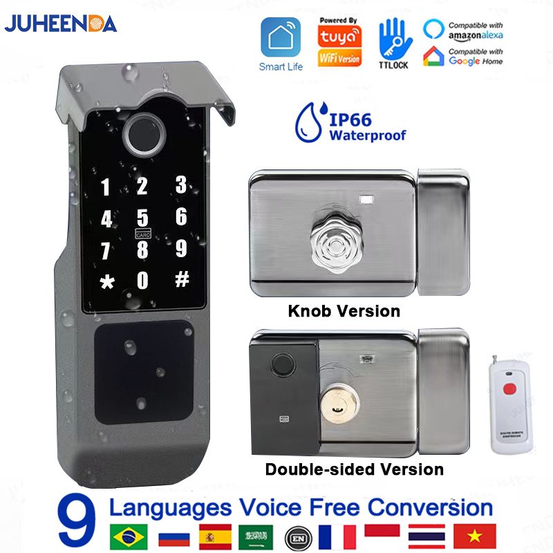 Fingerprint Gate Door Lock TUYA WIFI Outdoor Waterproof Smart Lock With Remote Control TTLOCK App Card Eletronico Digital Lock