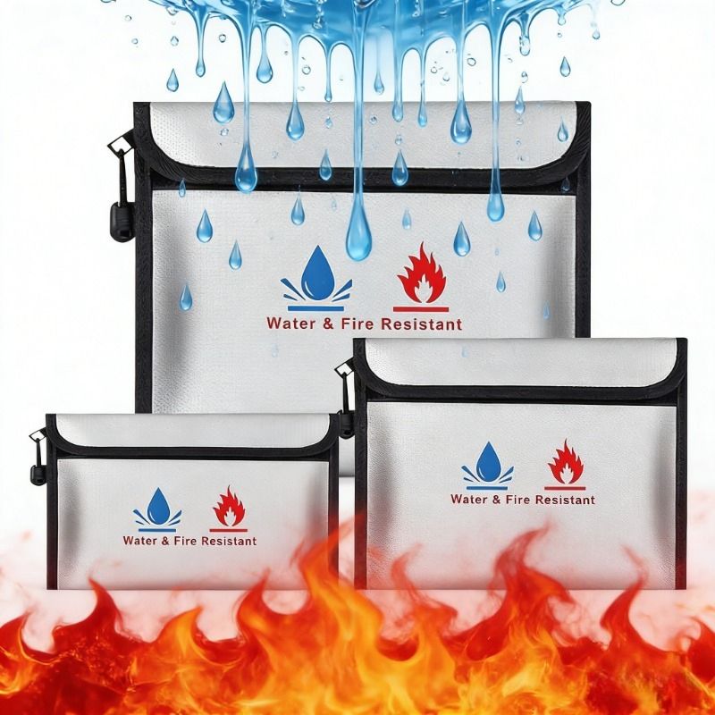 Fireproof Waterproof Document Bag with Zipper Closure for Certificates Money Cards Storage Home Office Travel Portable Organizer