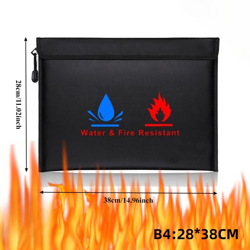 Fireproof Waterproof Document Bag with Zipper Closure for Certificates Money Cards Storage Home Office Travel Portable Organizer