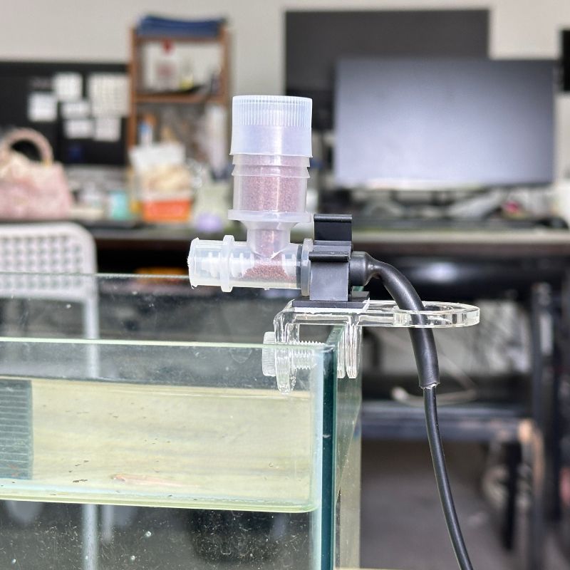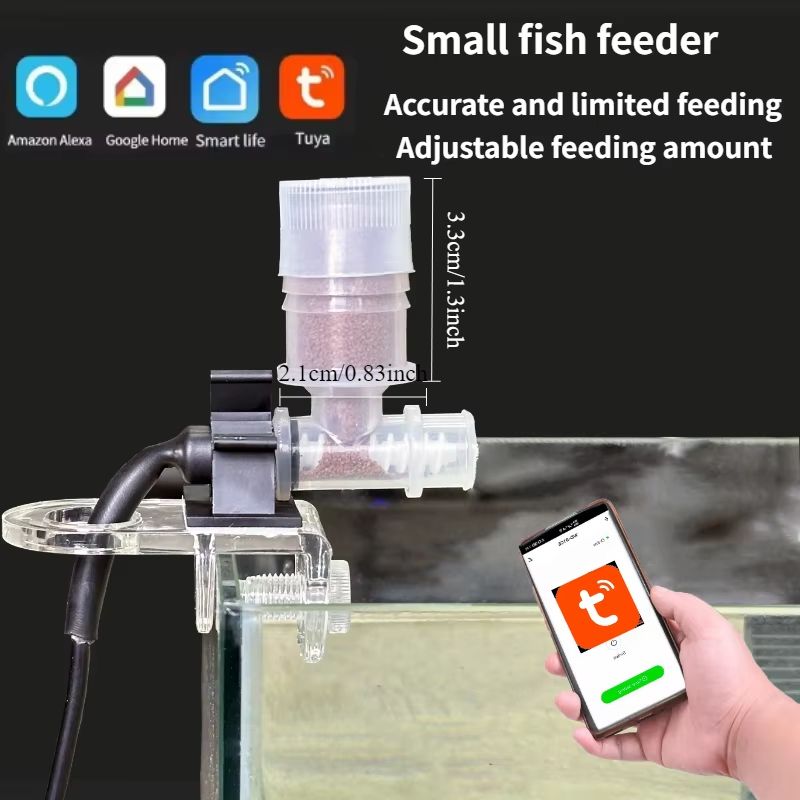 The feed uses artificial feed with round particles, which solves the problem that automatic feeding cannot be accurate and stable. Use eWeLink wifi relay control solution.